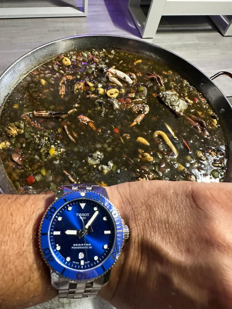 Pastellas – paella de pasta (fideos): Fideos finos, camarones, calamares, mejillones y almejas frescas, sofrito con ajo, cebolla, pimiento, tomate, azafrán y aceite de oliva virgen extra.